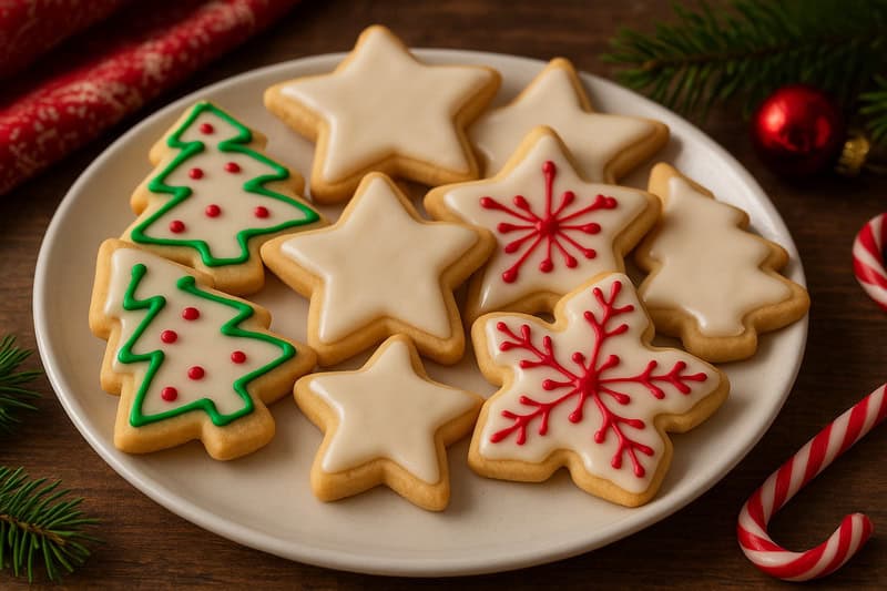 If you make these in snowflake shapes, it looks impressive when you cover it with powdered sugar. But, I will admit that a pretty decorated Santa or Christmas tree looks nicer than a plain cookie. Make sure that if you do decorate them with colors, you use natural food coloring to avoid artificial dyes.