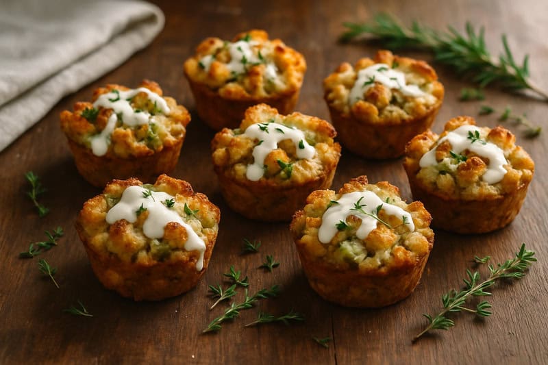 When I bake stuffing in muffin tins, the edges get perfectly crisp while the centers stay soft, which I absolutely adore. Once they’re out of the oven, I add a light swirl of ranch on top. The cool, tangy dressing melts slightly into the warm stuffing, giving every bite a little pop of flavor. It’s simple, but it feels like I’ve made something special without any extra fuss.